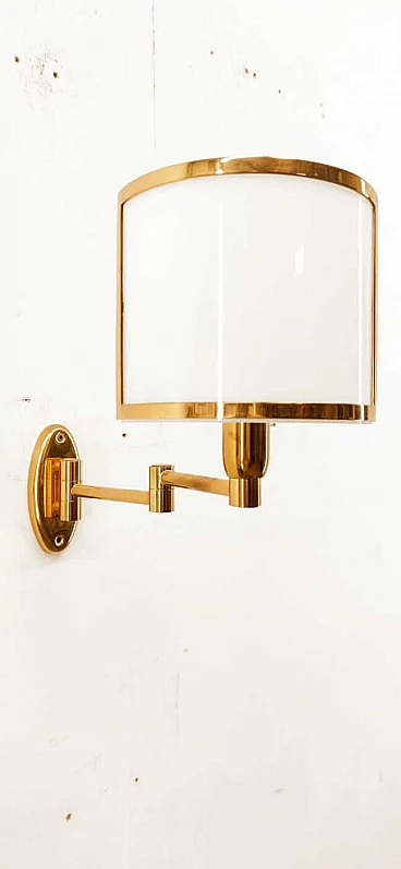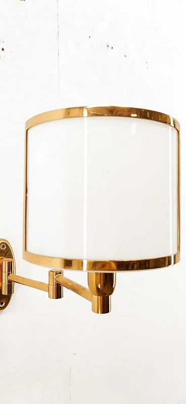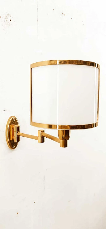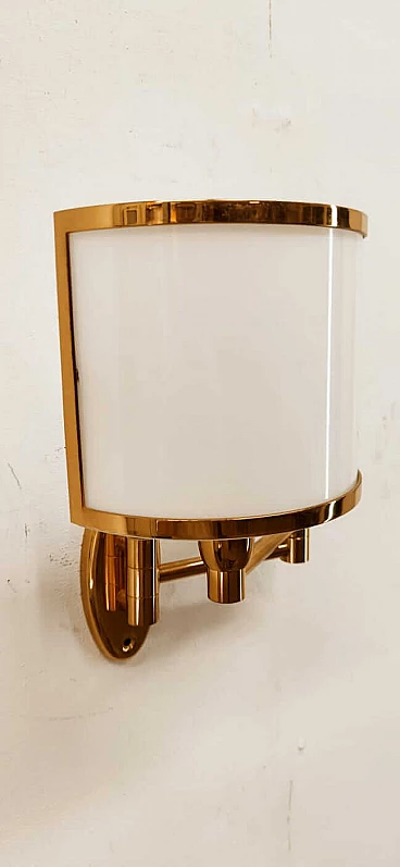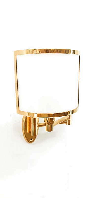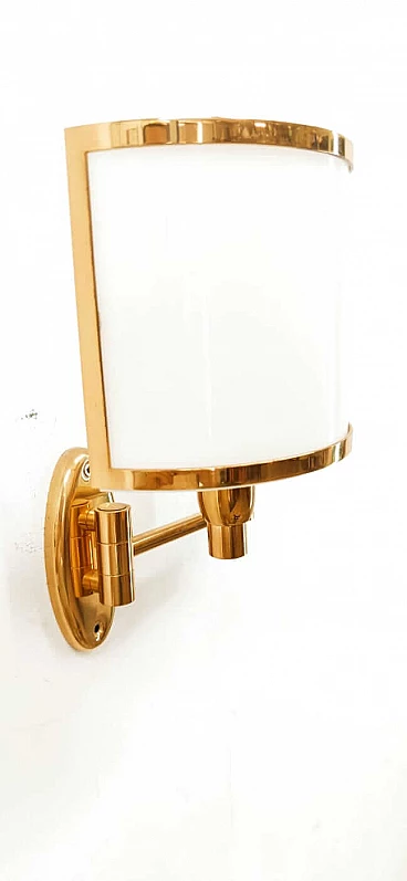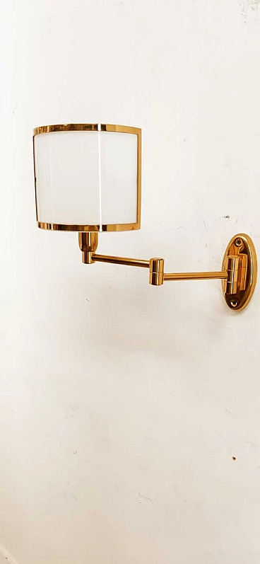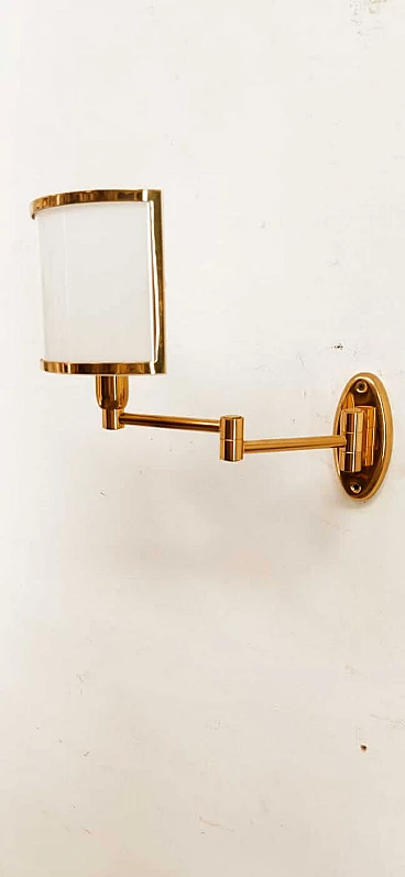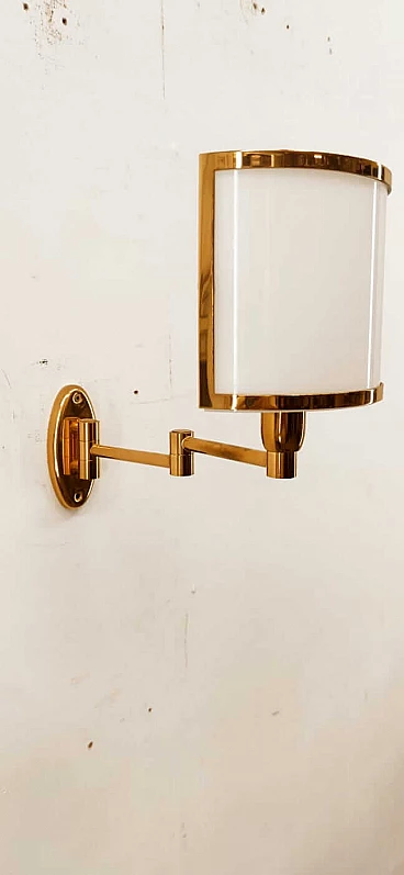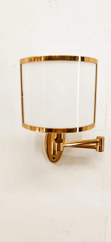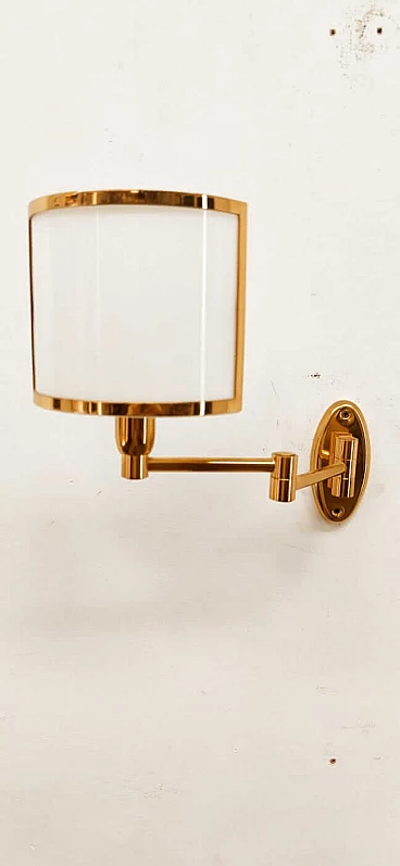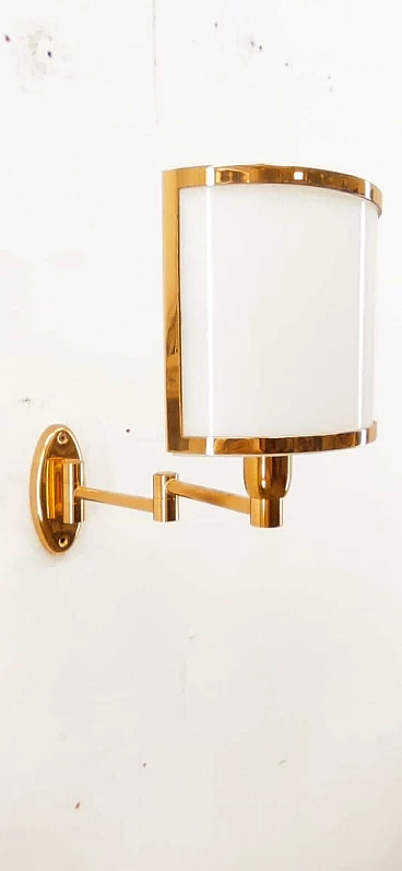 Applique in ottone e ventola in vetro, anni '80