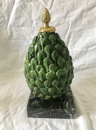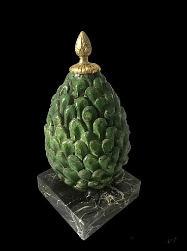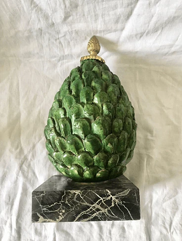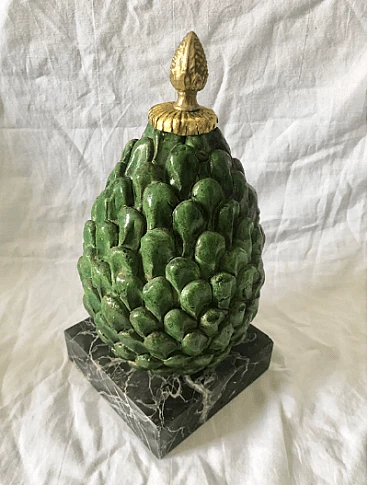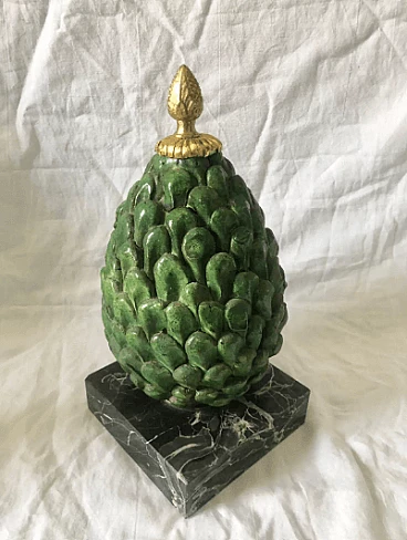 Pigna in terracotta smaltata, marmo e bronzo, anni '60