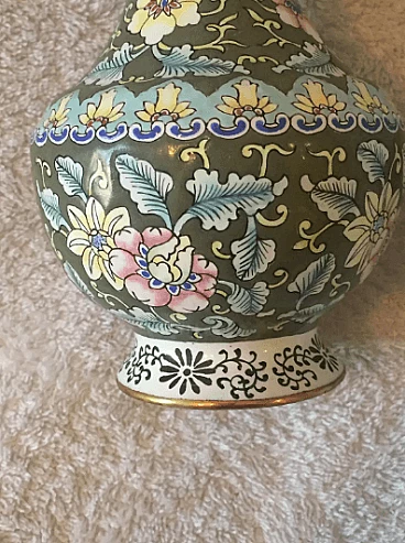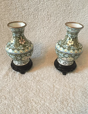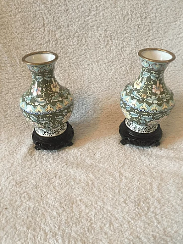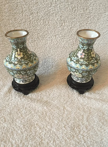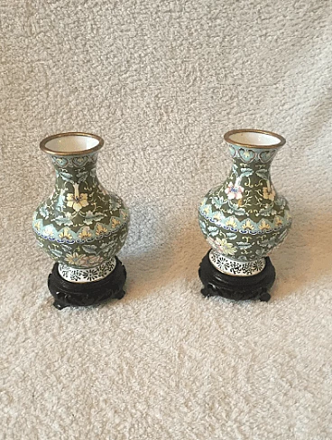 Coppia di vasi di cloisonne floreale, anni '50