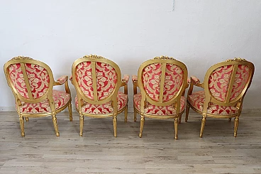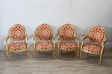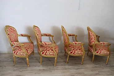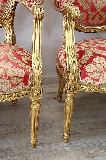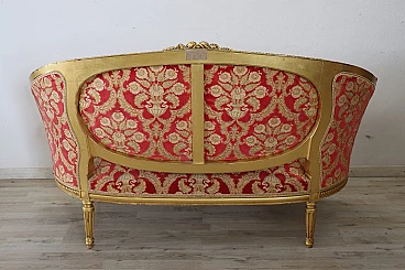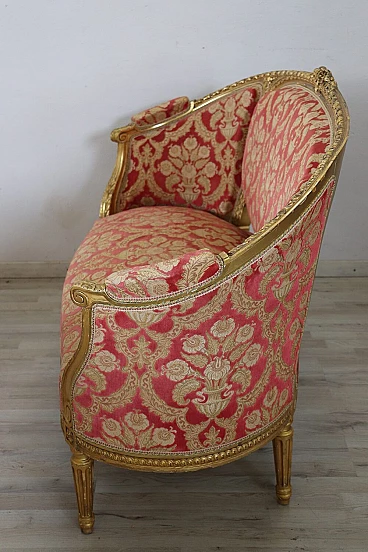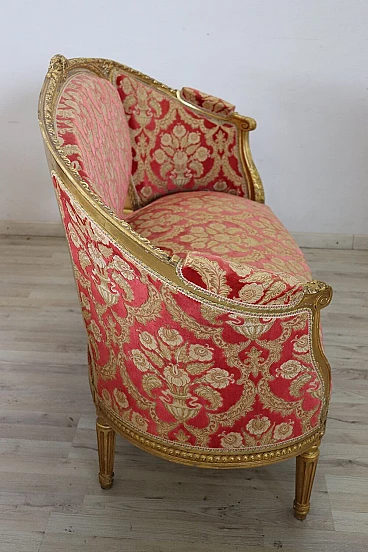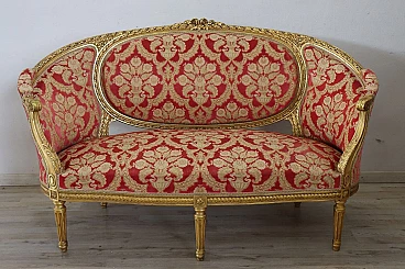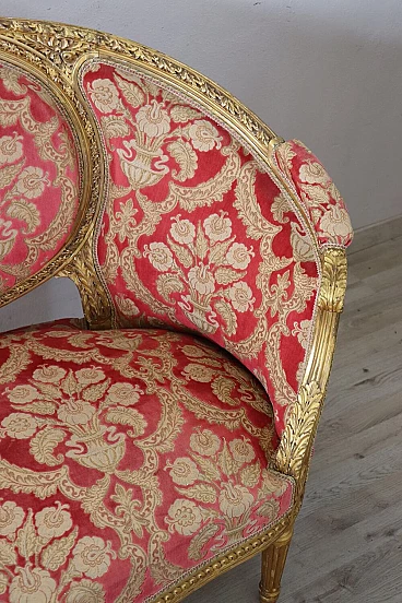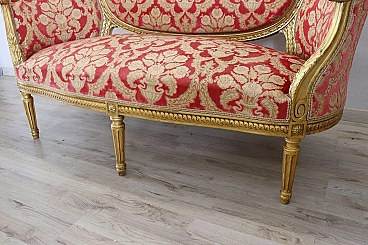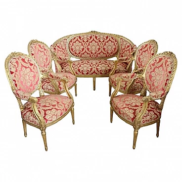 Un divano con 4 poltrone in legno e tessuto stile Luigi XVI, primo '900