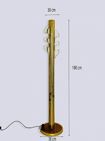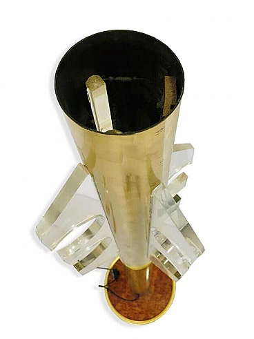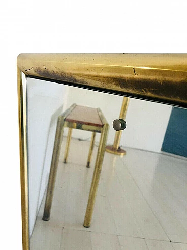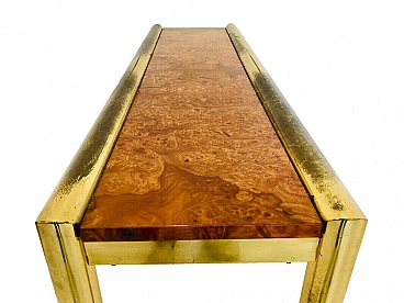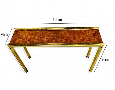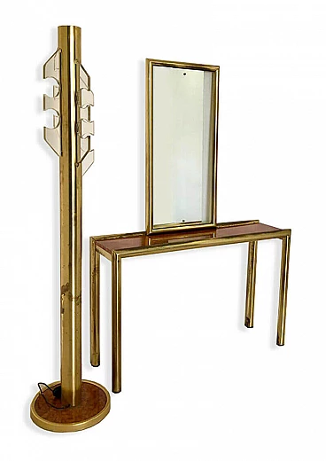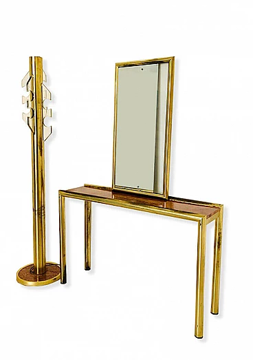Consolle con specchio e appendiabiti, in ottone e radica, anni '70