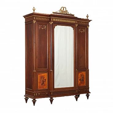 Armadio "Ducrot" sorretto da piedini torniti, dal fronte spezzato, al centro presenta un'anta con specchio e due ante laterali dipinte con putti; il corpo è interamente ornato con intagli dorati. Vittorio Ducrot assunse nel 1902 la direzione del mobilificio del patrigno, rinominandolo "Studio Ducrot", riuscendo ad affermarsi sempre più nel campo della produzione artigianale e industriale degli arredi siciliani. Specializzandosi nella progettazione e nella realizzazione di arredi di massa, si avvalse della collaborazione di alcune tra le più importanti personalità artistiche dell'epoca. Tra queste va certamente annoverato Ernesto Basile, architetto che agli inizi del Novecento ne ricoprì la carica di art director, portando l'azienda al successo internazionale. Prodotto che a causa dell'età e dell'usura richiede interventi di restauro e ripresa della lucidatura.