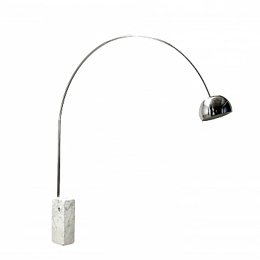 Lampada da terra modello Arco con base in marmo e struttura in acciaio progettata nel 1962 dai fratelli Castiglioni.