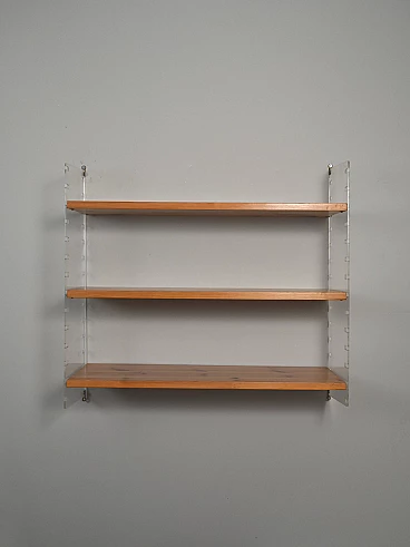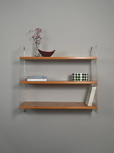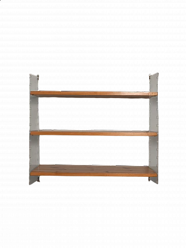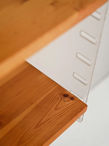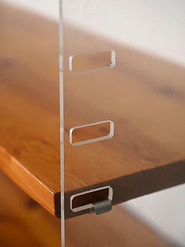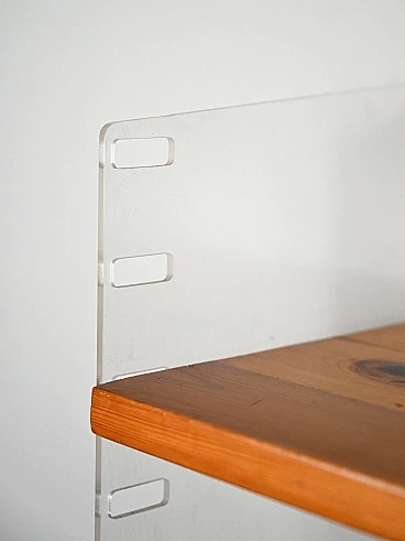 Sistema di scaffalature originale vintage. Design moderno ed elegante per questa libreria composta da tre mensole in teak e da due supporti laterali in plexiglass. Buone condizioni. Può presentare dei segni del tempo. Presta attenzione alle fotografie.