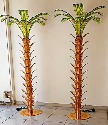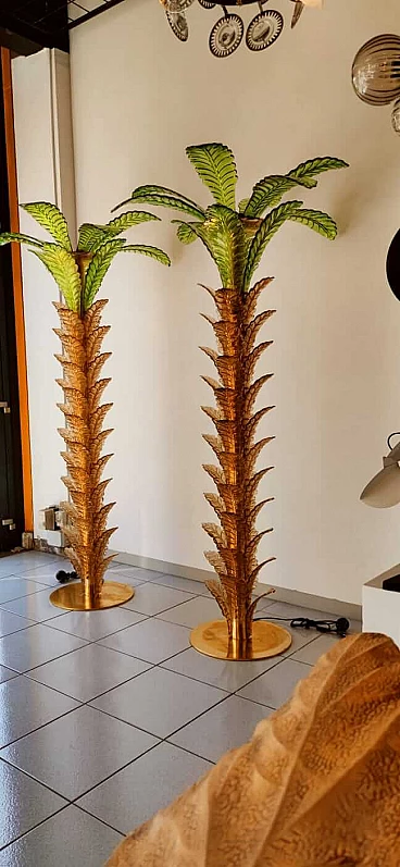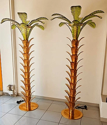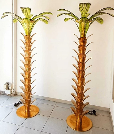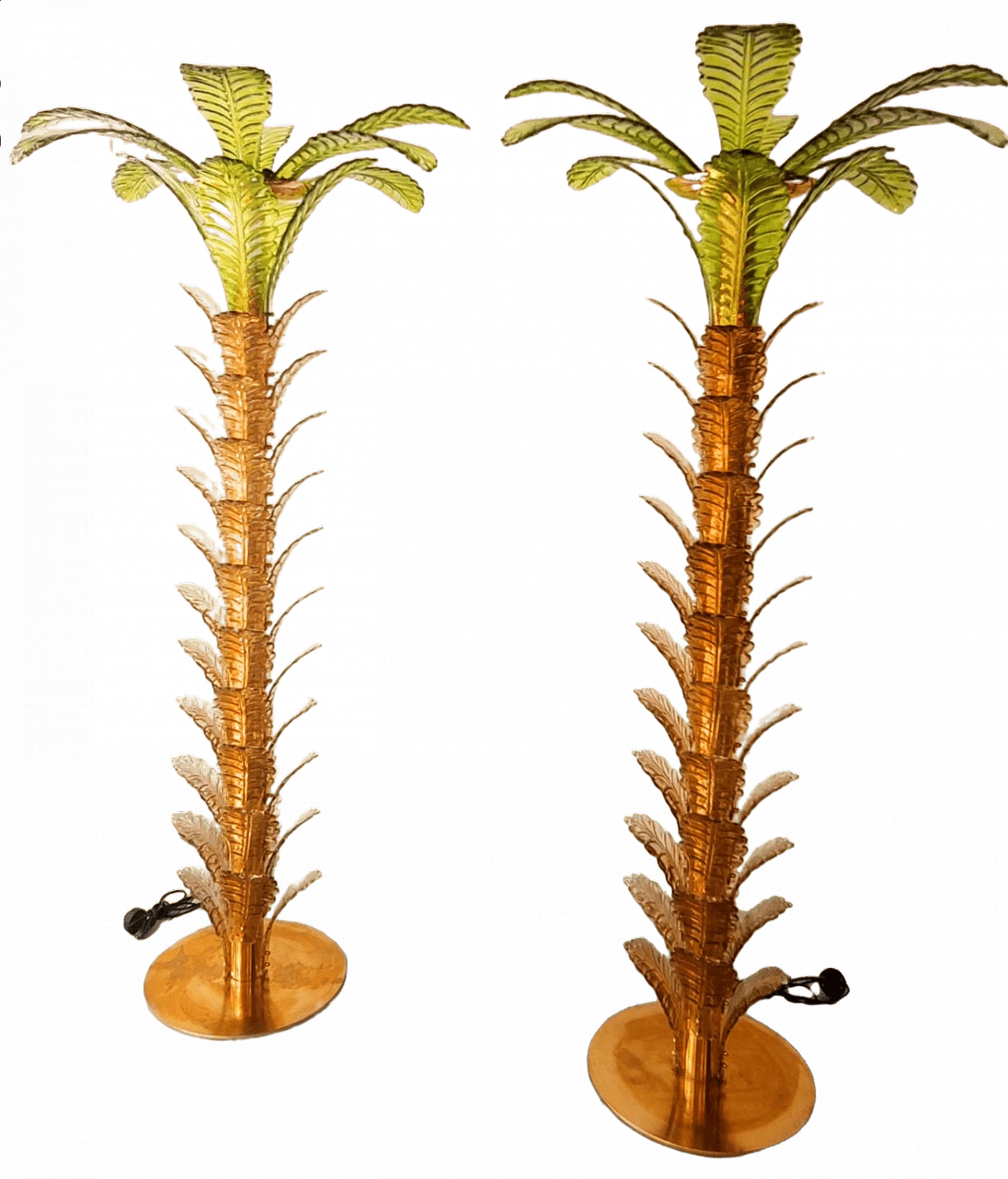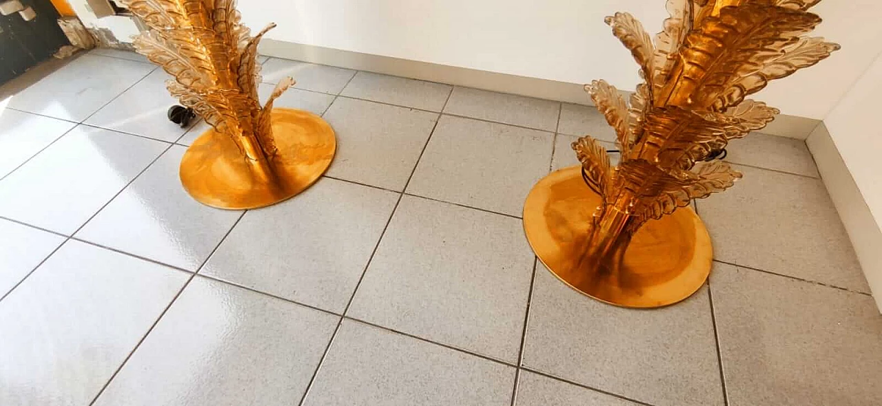 Coppia di lampade da terra a palma in vetro in Murano, anni '70
