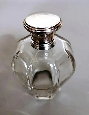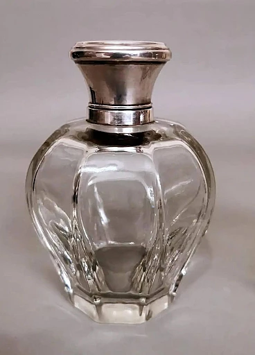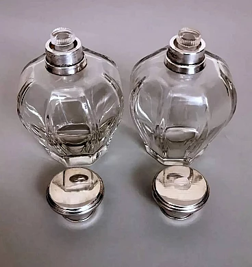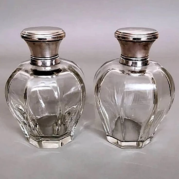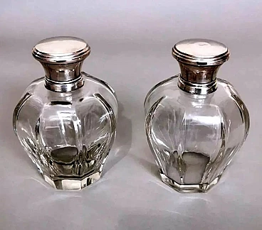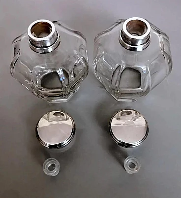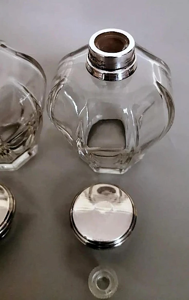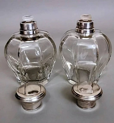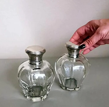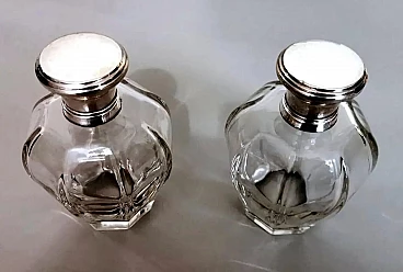 Coppia di flaconi da toilette in cristallo e coperchio in argento Art Déco, anni '30