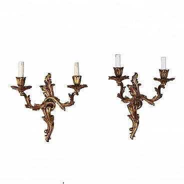Coppia di applique in stile Rococò a 2 luci in bronzo dorato.