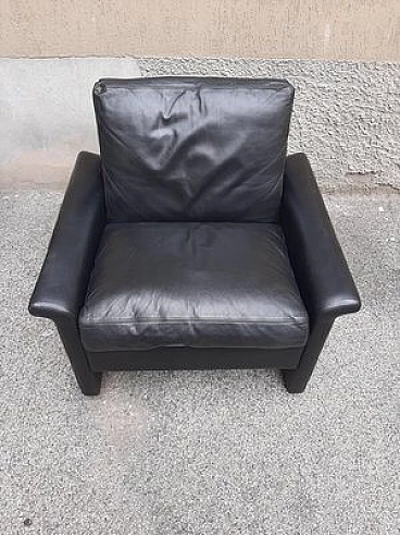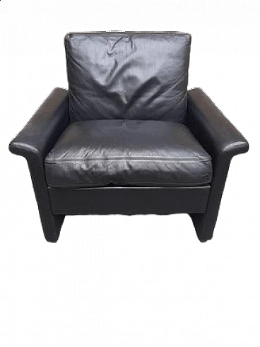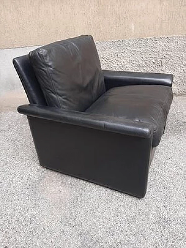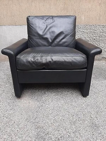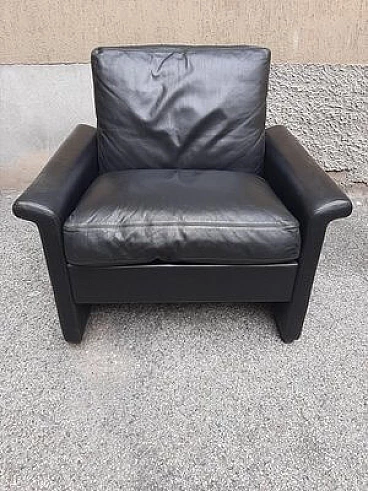 Poltrona in pelle nera di ICF De Padova, anni '70
