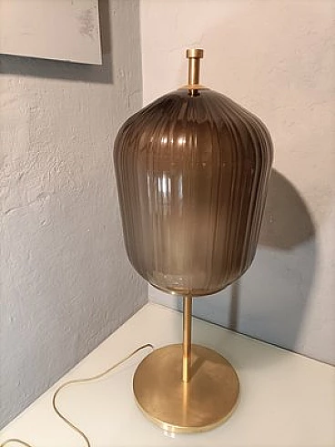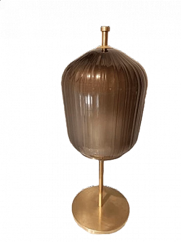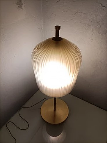 Lampada da terra in ottone satinato e vetro lattimo, anni 2000