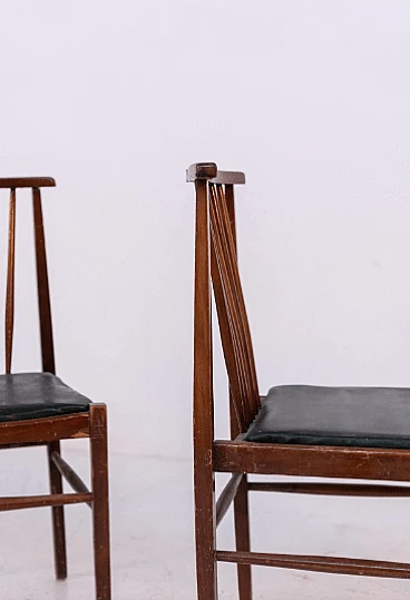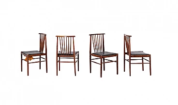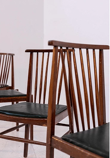 4 Sedie in stile americano in pelle e legno, anni '50