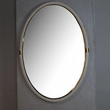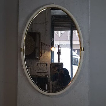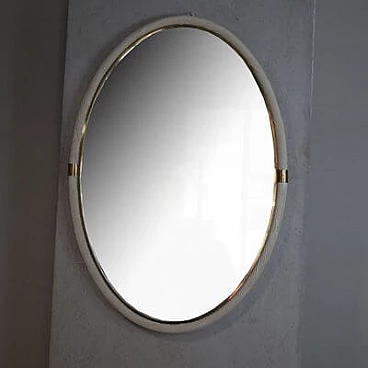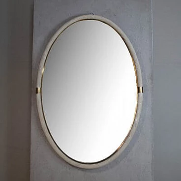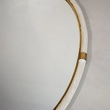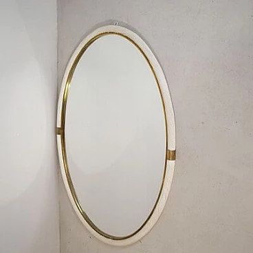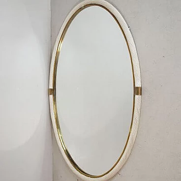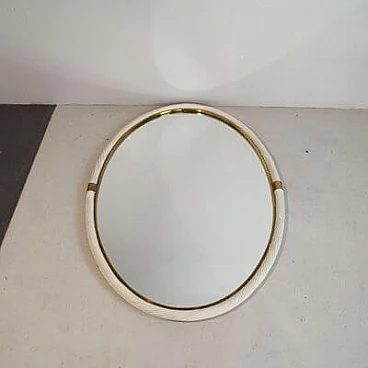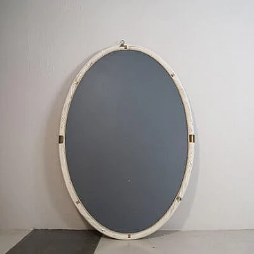 Specchio ovale in vimini bianco e ottone, attr. a Tommaso Barbi, anni '60