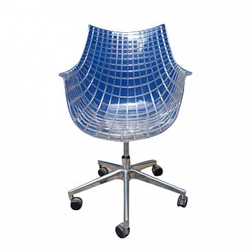 Poltrona girevole in acciaio lucido disegnata da Christophe Pillet, regolabile in altezza tramite leva. Le nervature del materiale plastico della seduta riflettono la luce. Oggetto in ottimo stato di conservazione con qualche segno di utilizzo dato il materiale della seduta. L'altezza della sedia varia tra 83,5 a 91,5 cm. L'altezza della seduta varia tra 44 e 52 cm.