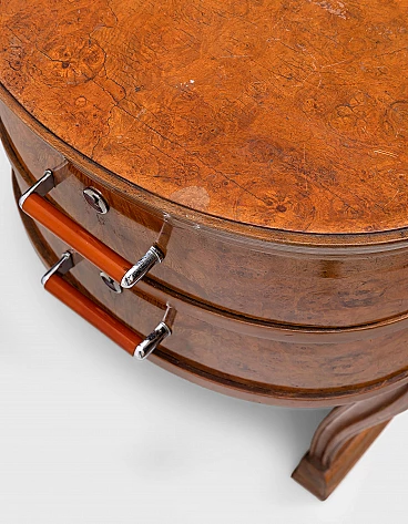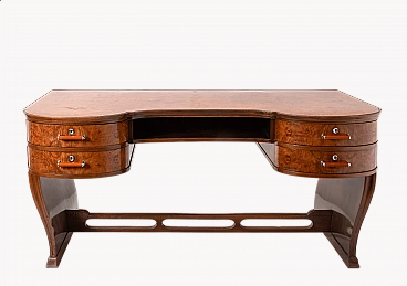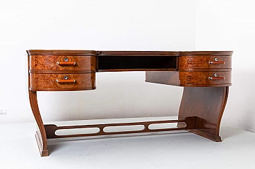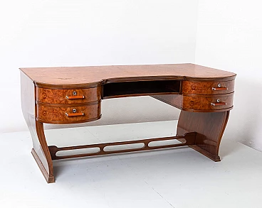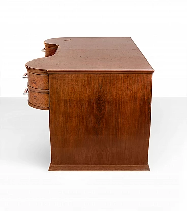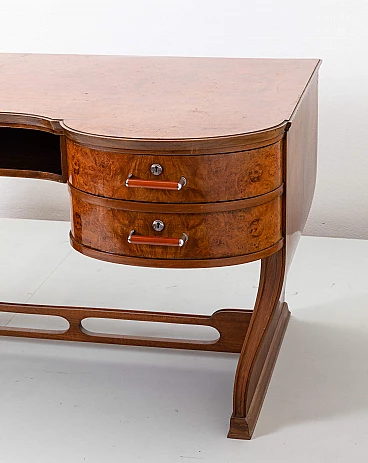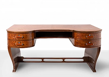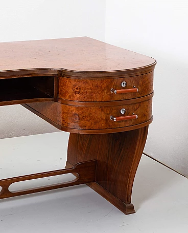 Scrivania dalle forme curvilinee in legno e radica Art Deco, anni '30