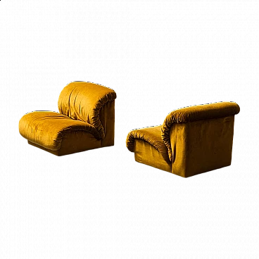 Coppia di poltrone Doimo in velluto giallo, anni '70
