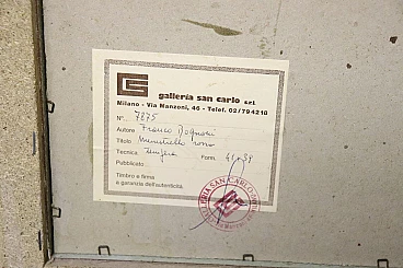 “Menestrello Rosso” è uno splendido dipinto tempera su masonite dell’importante artista italiano milanese Franco Rognoni (Milano 1913-1999) intitolato. Sul retro autorevole timbro e firma a garanzia di autenticità della storica galleria San Carlo di Milano che è da sempre punto di riferimento per le avanguardie storiche Europee del secondo ‘900. Accompagnato inoltre da certificato di autenticità rilasciato sempre dalla galleria San Carlo su foto dell’opera. Ottimo prezzo trattabile inviate la vostra proposta di acquisto. Opera per collezionisti.
