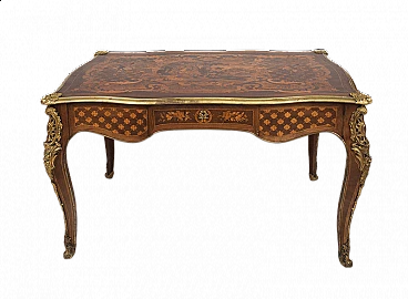 Scrivania Napoleone III in legni pregiati e applicazioni in bronzo dorato, '800