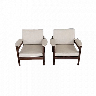Coppia di poltrone in teak e tessuto in stile danese, anni '60