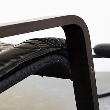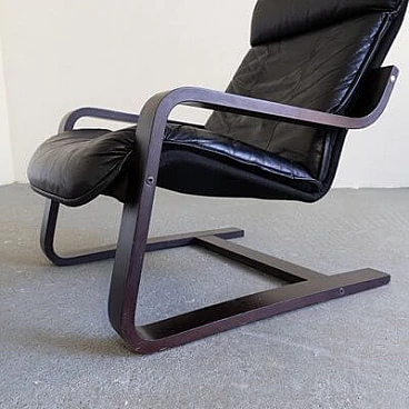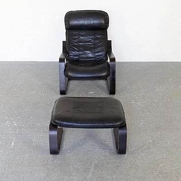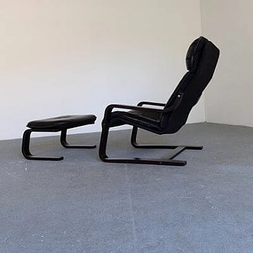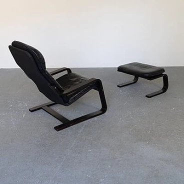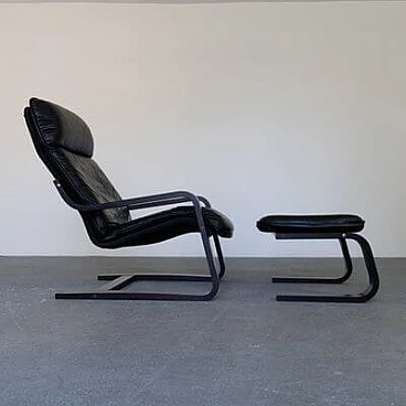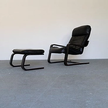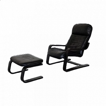 Coppia di sedute in pelle con una poltrona e un pouf, anni '70