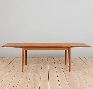 Tavolo da pranzo in teak a due estensioni di Henning Kjaernulf, anni '60