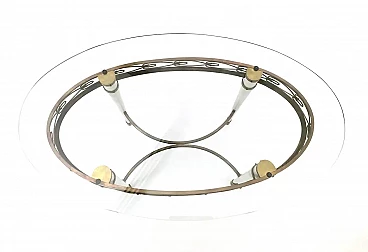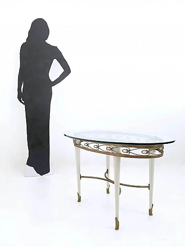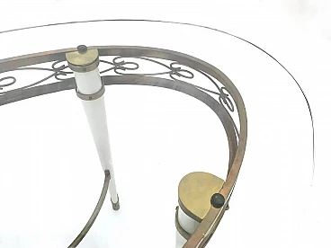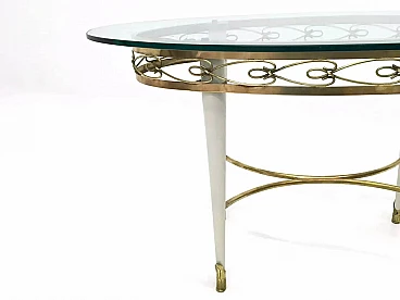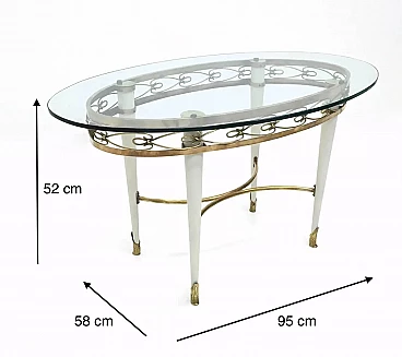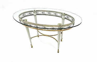 Tavolino in ottone con piano ovale in vetro nello stile di Pierluigi Colli, anni '50