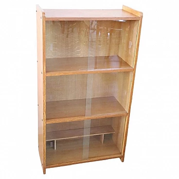 Piccola libreria in legno con ante scorrevoli, anni ’80