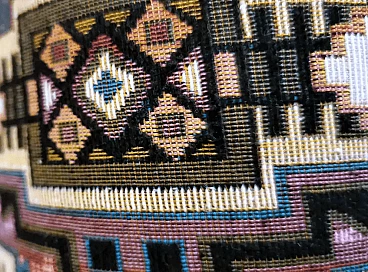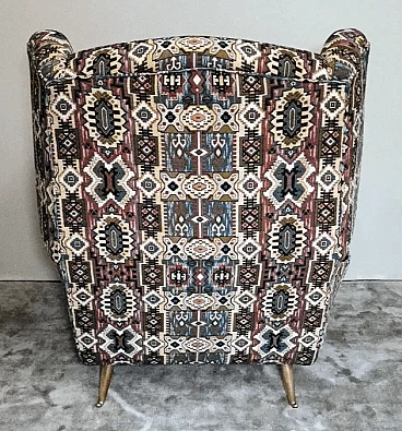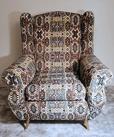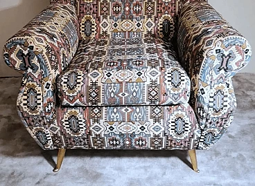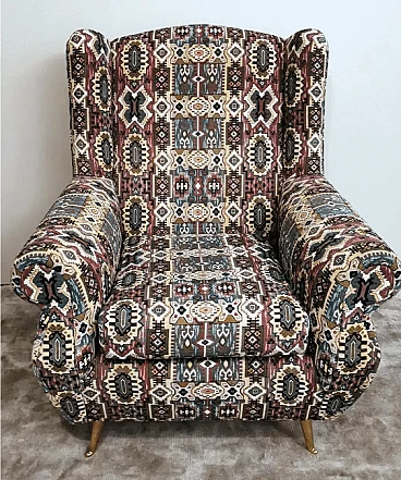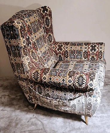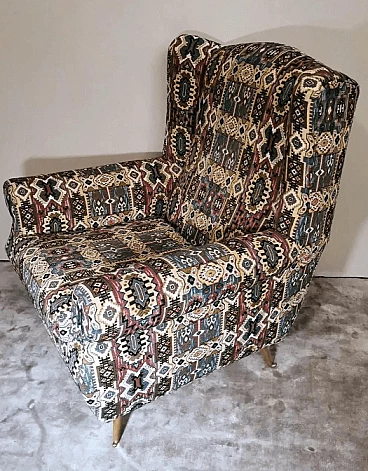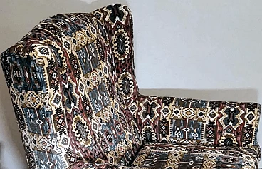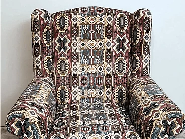 Poltrona francese con tessuto a fantasia realizzato a mano su telaio, anni '70