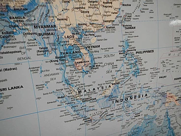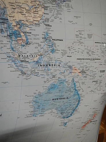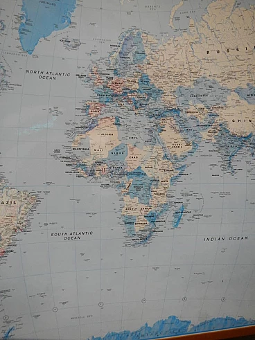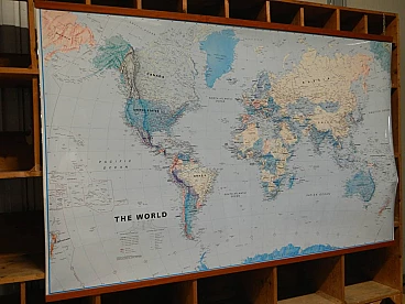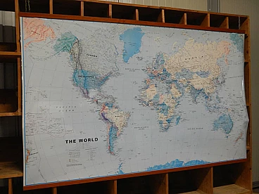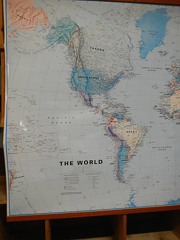 Mappa del mondo in carta plastificata con cornice in abete