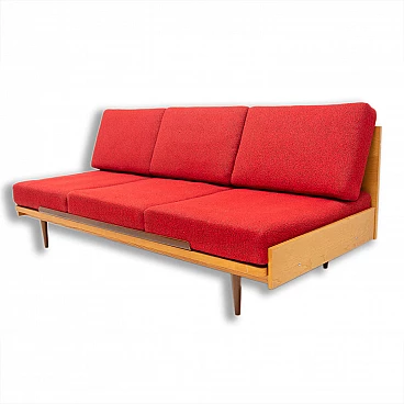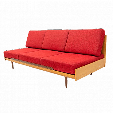 Divano letto pieghevole con struttura in faggio, anni '60