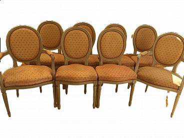 Set n. 8 sedie in stile Luigi XVI di cui due dotate di braccioli con piccole imbottiture.