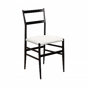 Sedia Super Leggera di Gio Ponti in legno smaltato con seduta in espanso e rivestimento in tessuto.