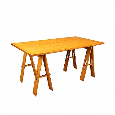 Tavolo Cavalletto con piano in legno impiallacciato frassino e cavalletti in legno massello di pino.