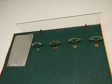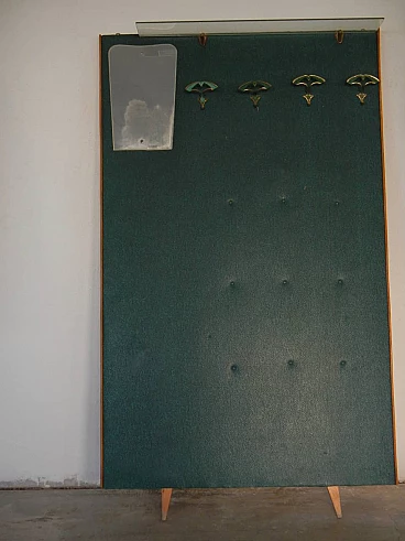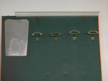 Pannello da muro da entrata con ganci e specchio, anni '70