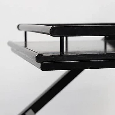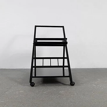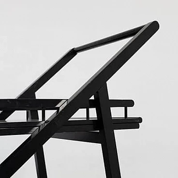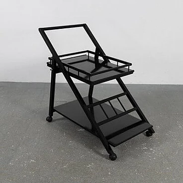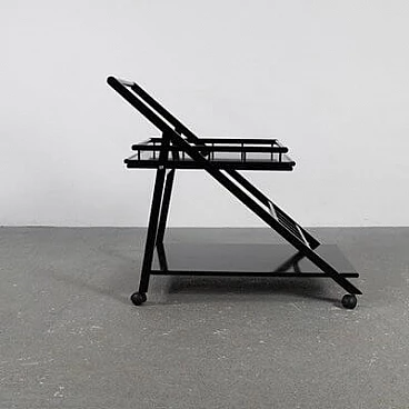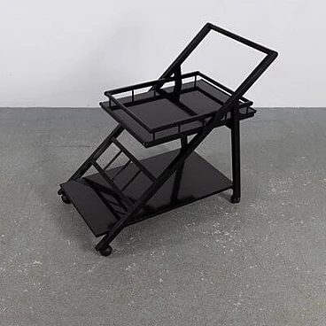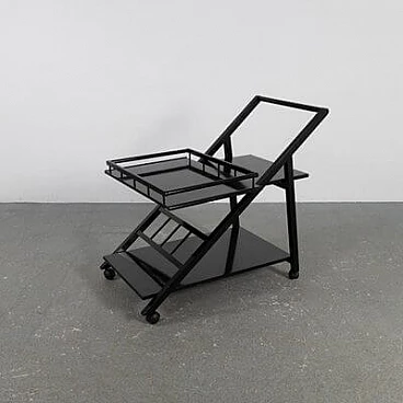 Carrello bar in frassino laccato nero con vassoio rimovibile, anni '70