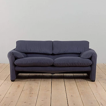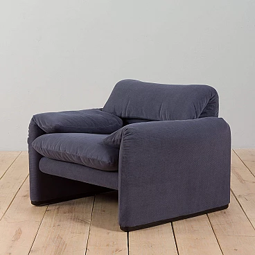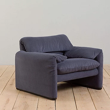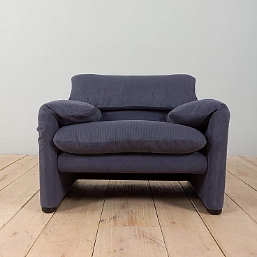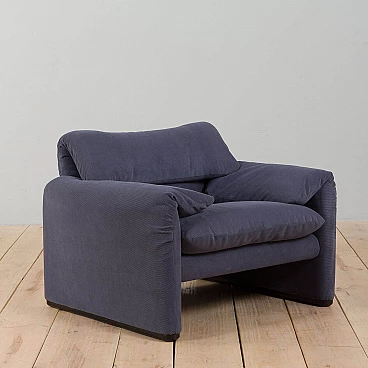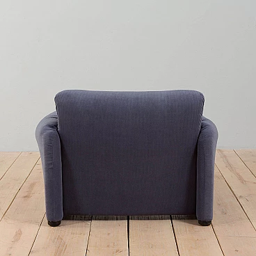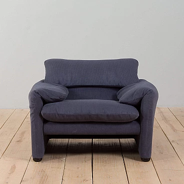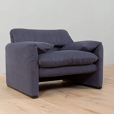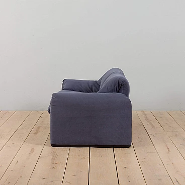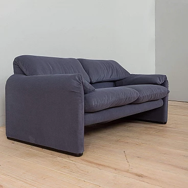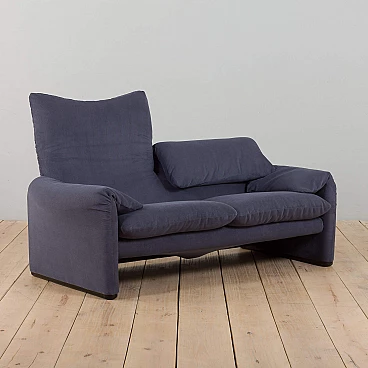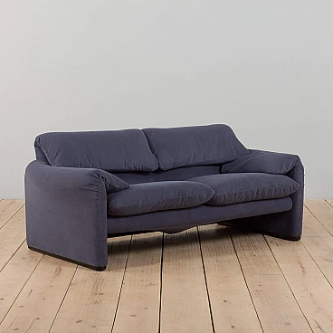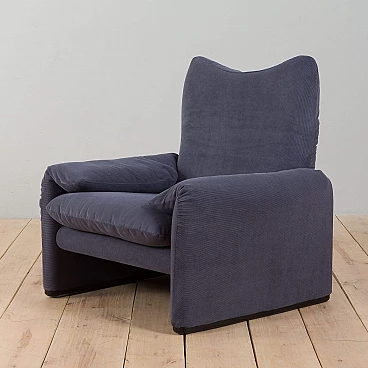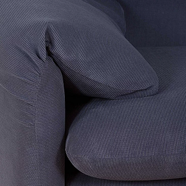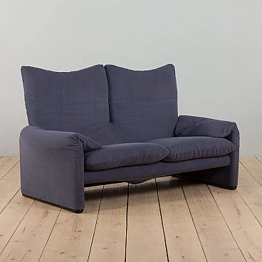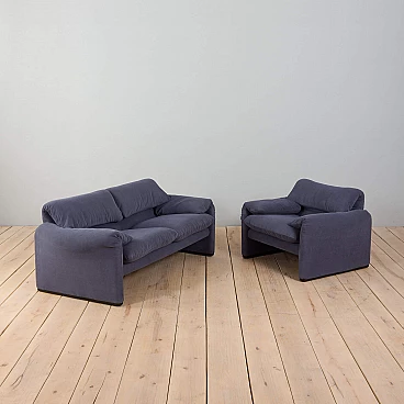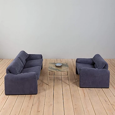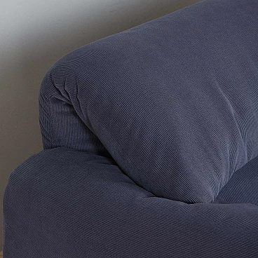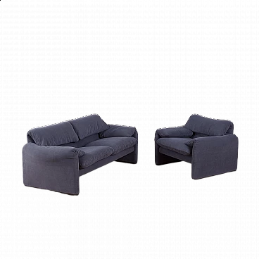 Un set da salotto estremamente confortevole, il modello Maralunga è stato disegnato da Vico Magistretti per l'azienda italiana Cassina negli anni '80. È composto da un divano a due posti e da una poltrona, entrambi recentemente rivestiti in velluto a coste blu intenso. Il modello Maralunga è composto da forme calde e rassicuranti, dove la possibilità di movimento dello schienale, l'aspetto morbido e l'imbottitura aumentano il comfort. Particolarmente rinomato per il suo schienale a orecchie di coniglio, che può essere regolato a seconda delle necessità. Si curvano grazie a un meccanismo interno e possono essere facilmente regolati verso l'alto per consentire all'ospite di appoggiare la testa come preferisce. I piedi del divano e della poltrona in plastica marrone aggiungono una creazione moderna all'insieme. Il set Maralunga è ideale per salotti di design e per chi ama il comfort assoluto. Ottime condizioni con tappezzeria nuova.