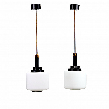 Coppia di lampade da soffitto in vetro opalino, anni '60