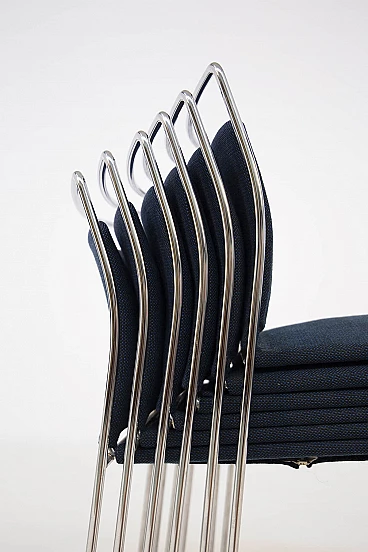 6 Sedie in acciaio e cotone di Kazuhide Takahama per Gavina, anni '70