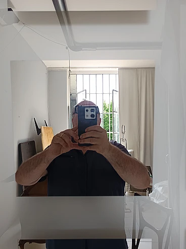 Specchio da parete rotondo grigio-verde Andromeda di Nanda Vigo, anni '70