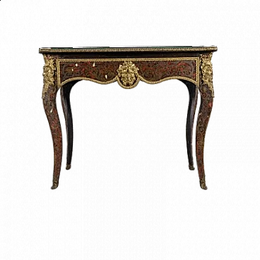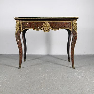 Scrivania Napoleone III in legno, bronzo e vetro, '800
