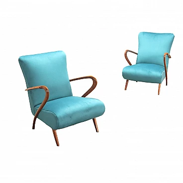 Coppia di poltrone con rivestimento in velluto, anni '50