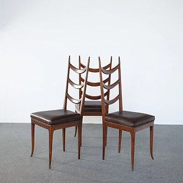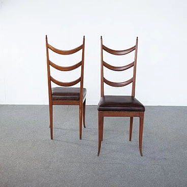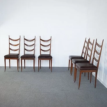 6 Sedie in legno e pelle di Osvaldo Borsani, anni '50