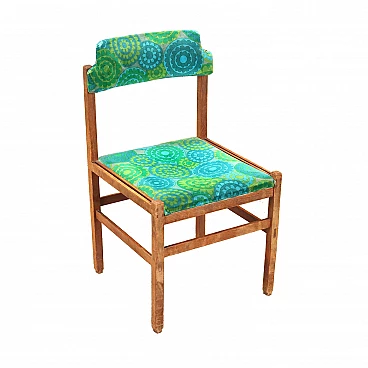 Sedia in faggio con rivestimento in tessuto a fantasia floreale, anni '70