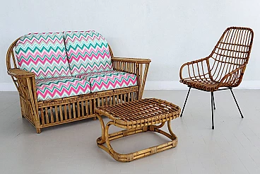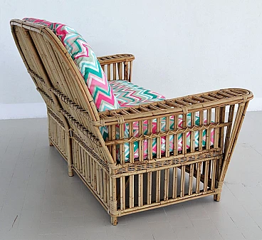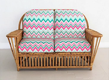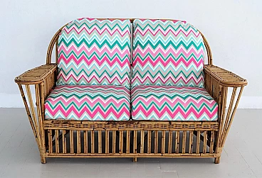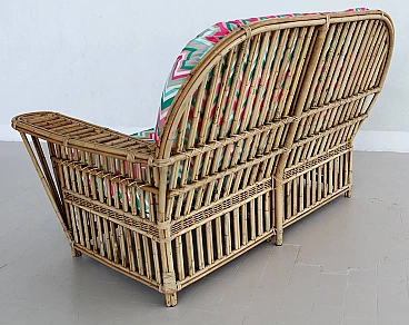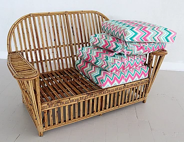 Divanetto a 2 posti in bambu e rattan, anni '70