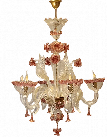 Lampadario in vetro di Murano a 6 luci, metà '900. L'oggetto è in ottime condizioni e comprende un certificato di autenticità.