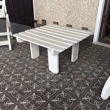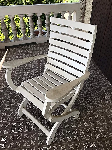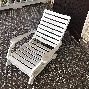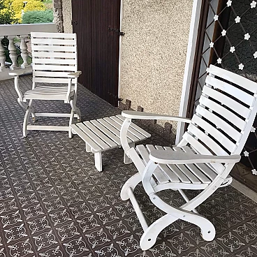 2 Sedie sdraio e 1 tavolino in legno bianco, anni '70
