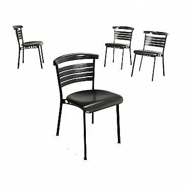 Gruppo di quattro sedie modello "Lola" realizzate da Mario Broggi e Michael Burkhardt per Sorgente dei Mobili negli anni '80. Metallo smaltato e poliuretano.