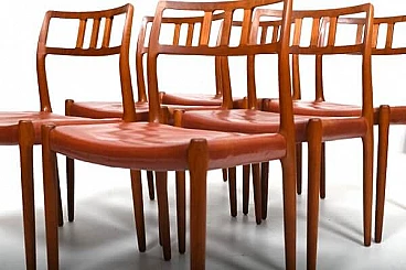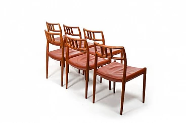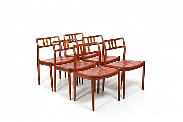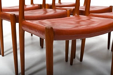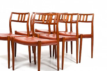 6 Sedie in teak e pelle di Niels Otto Møller, anni '60