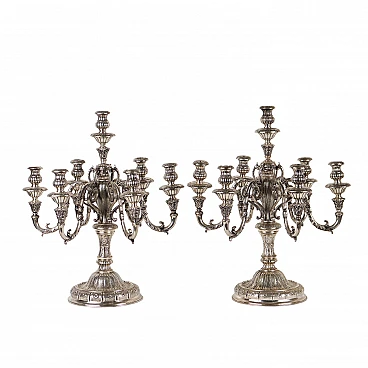 Coppia di candelabri a sette fiamme in argento, anni '30