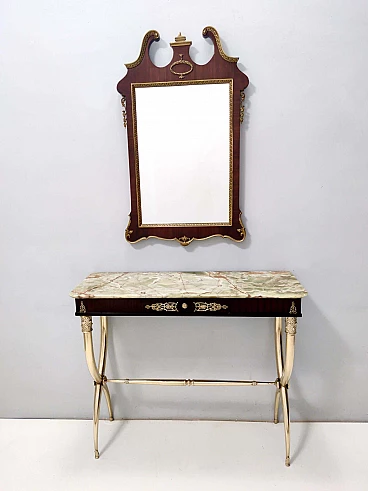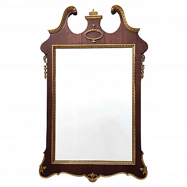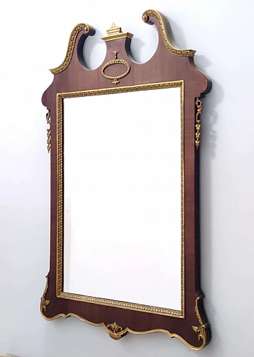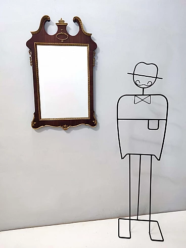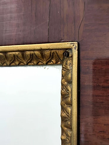 Specchio da parete con cornice in faggio e ottone, anni '60
