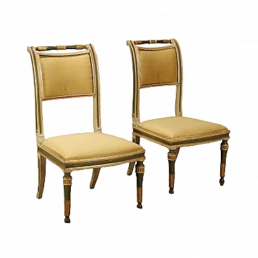 Coppia di sedie Impero in legno laccato e dorato, '800