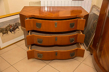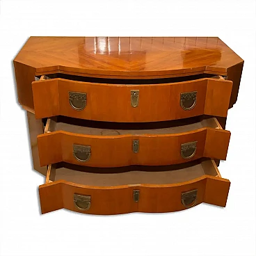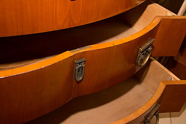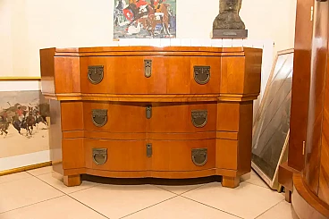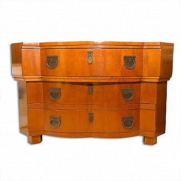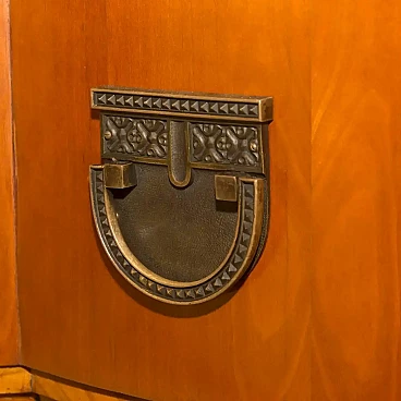 Cassettiera Decò in ciliegio con elementi in ottone, inizio '900